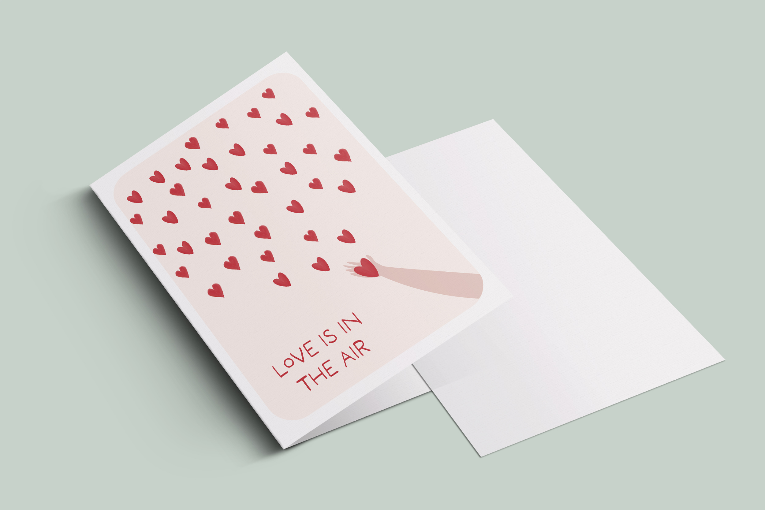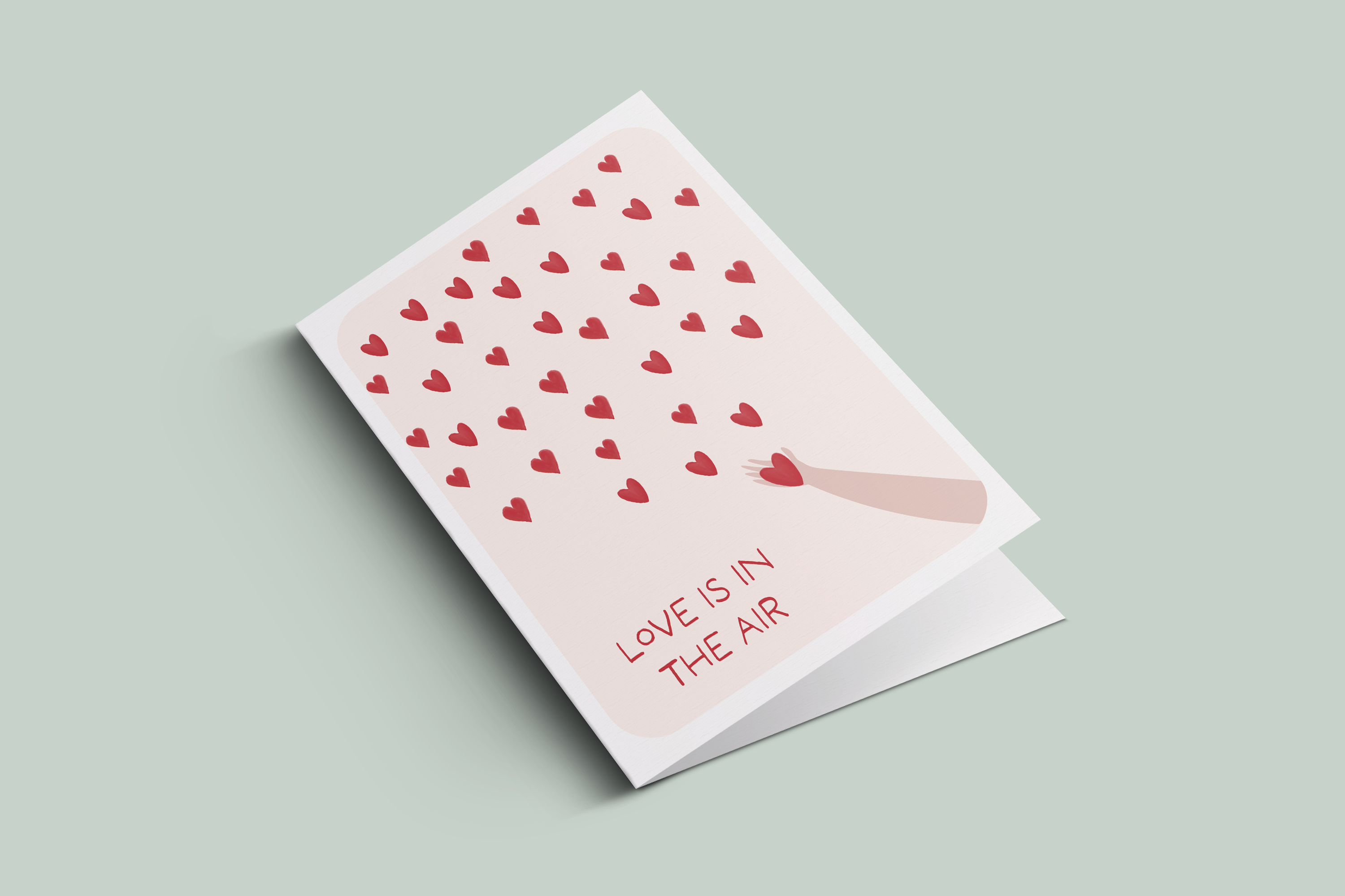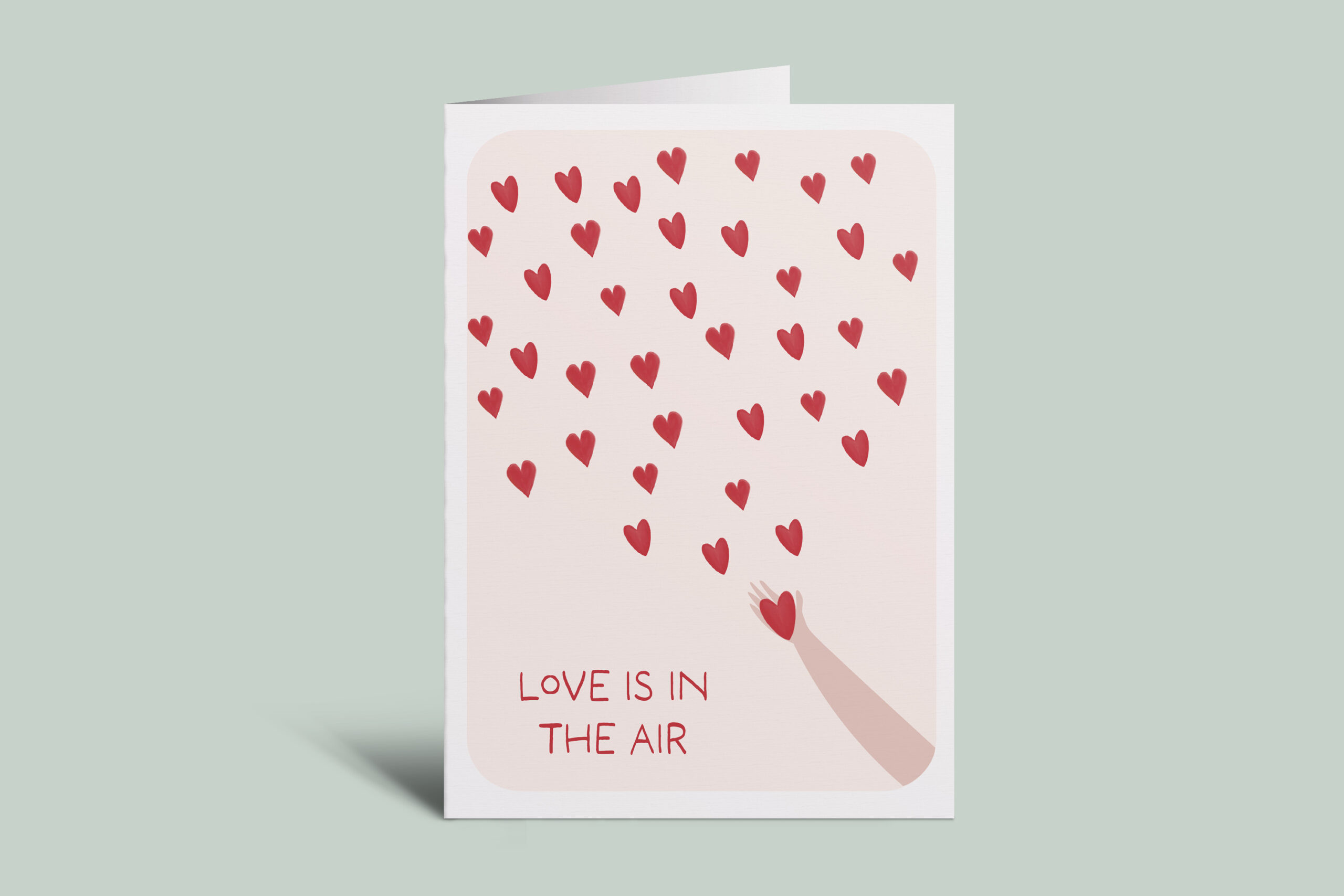 Greeting Card Raleu Love is in the Air Illustration on cover with white envelope.