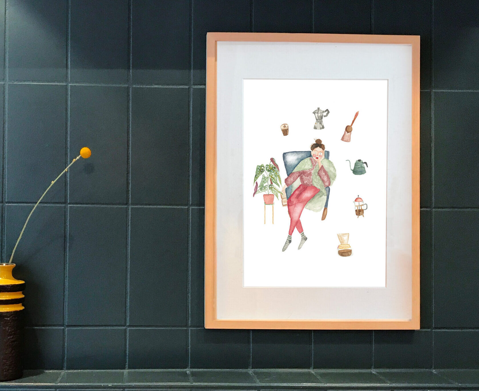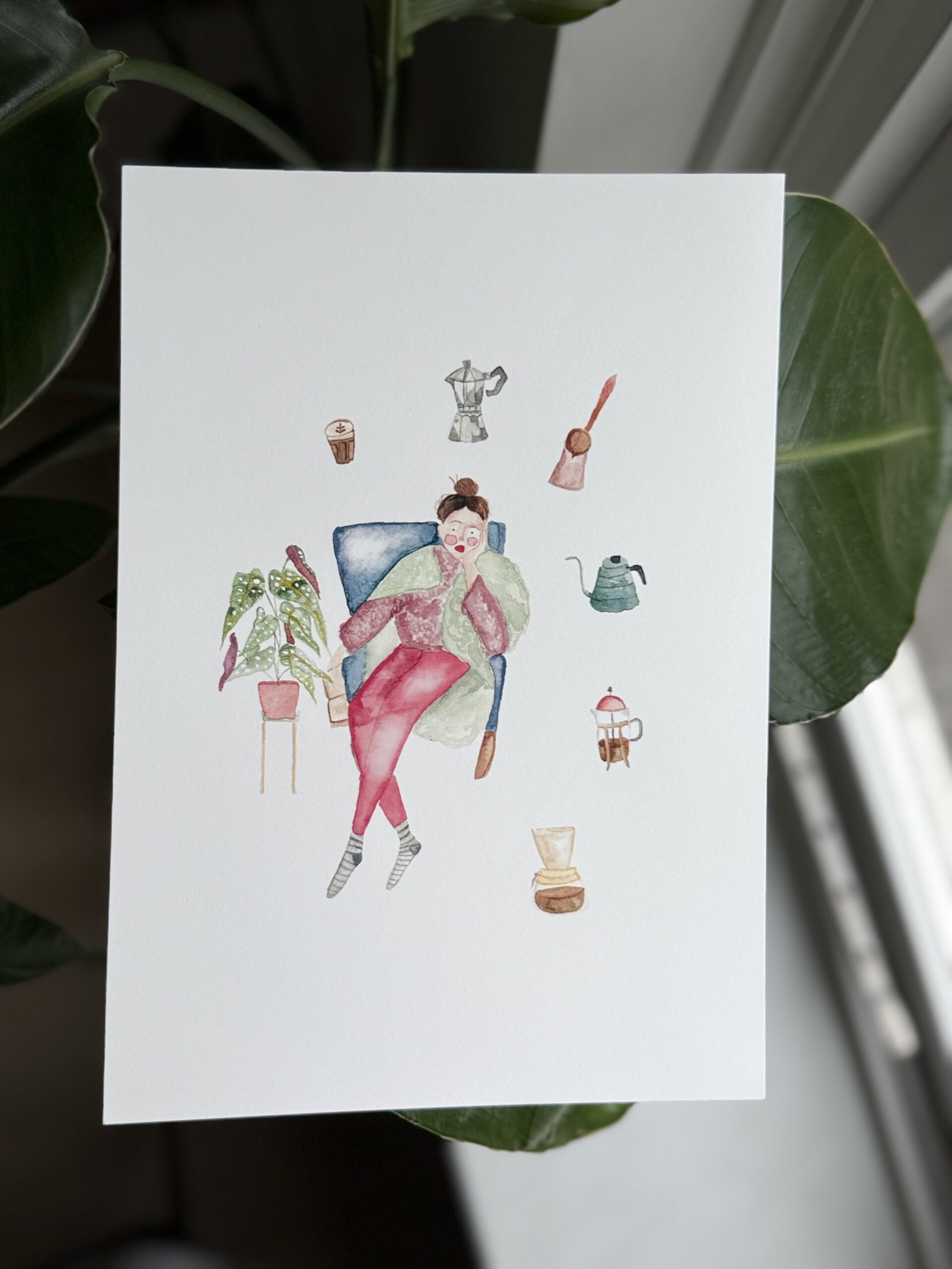 “Winter and a girl” watercolor Fine Art print. Sometimes we found ourselves at sofa gazing through nothing and thinking a lot.