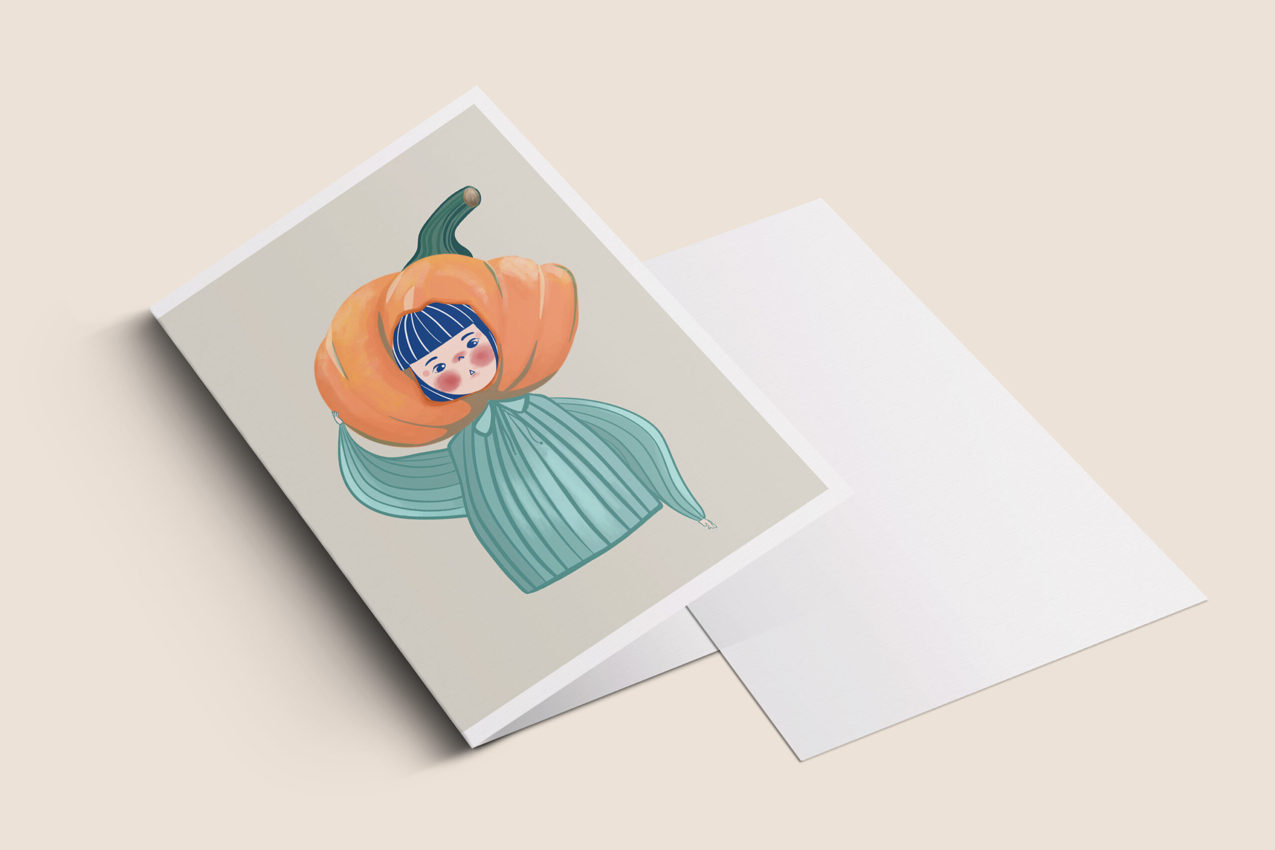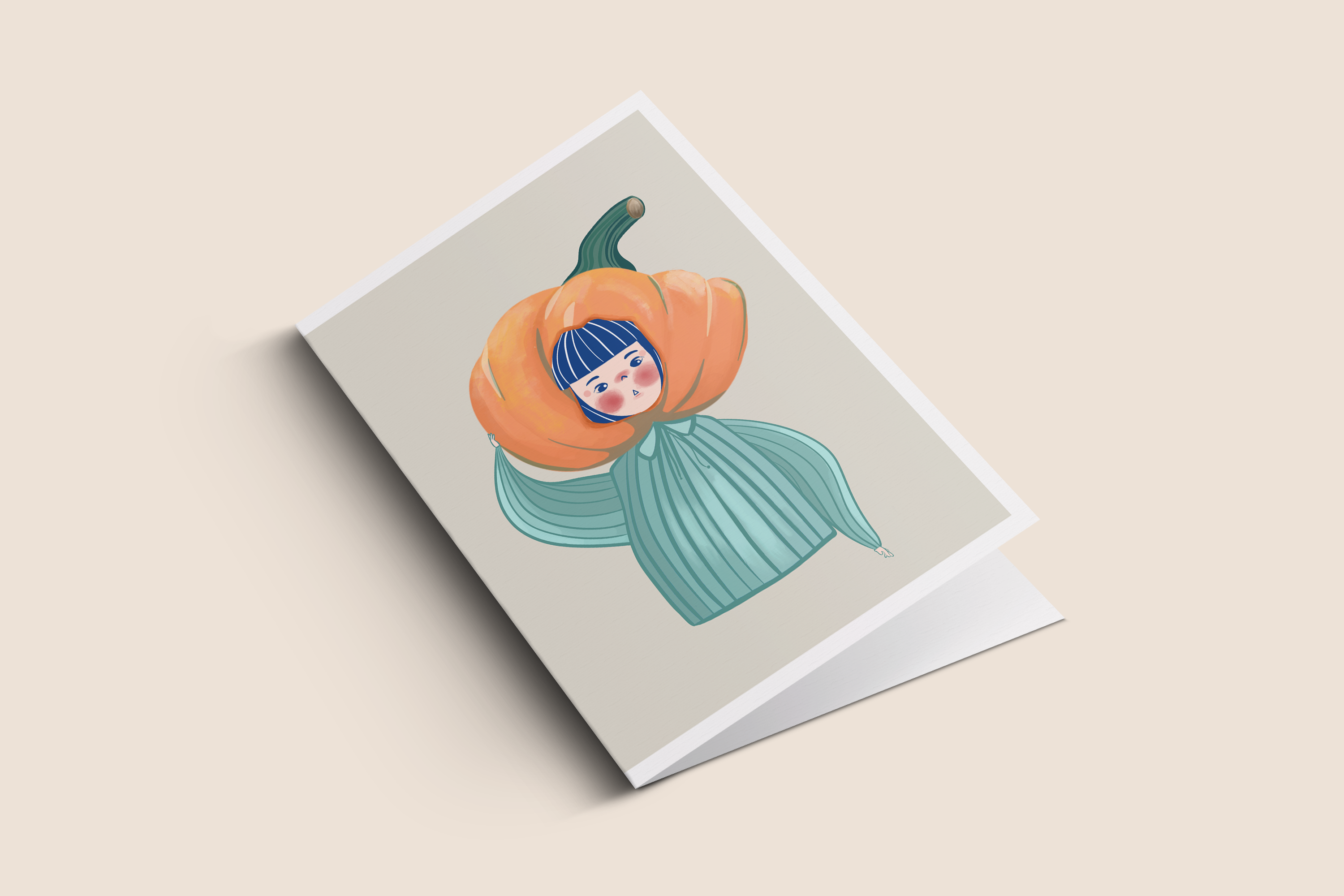 Greeting Card Raleu Pumpkin Girl Illustration on cover.