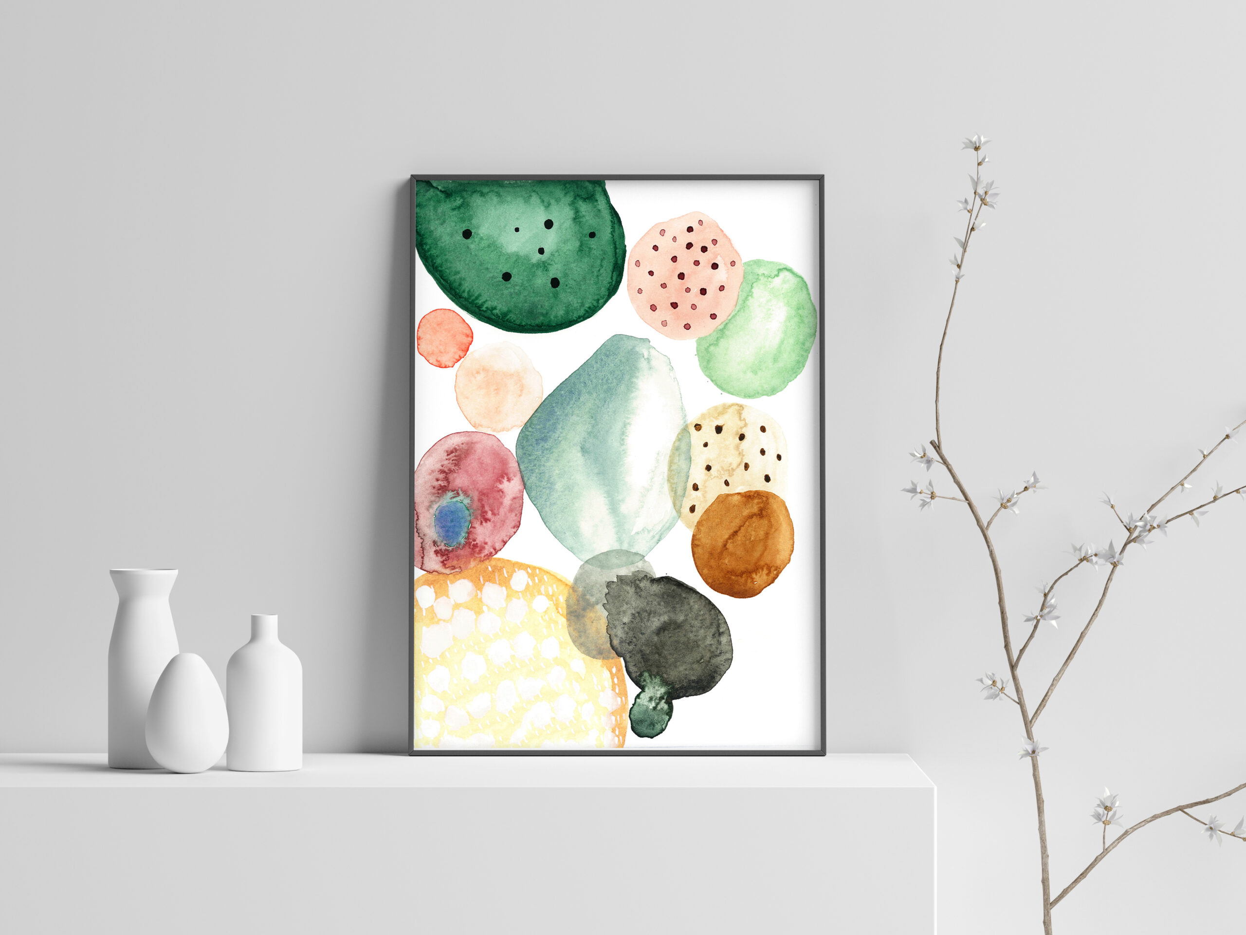 abstract elegance with our Blob watercolor art print, which showcases shapes in a soothing pastel palette.